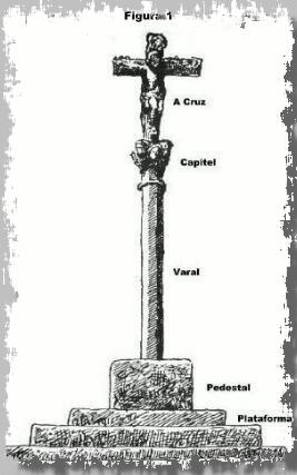 - Fuste (o varal), cuadrangular, octogonal o cilíndrico, liso con motivos diversos (escalera, martillo, tenazas, calaveras, serpiente, santiños (escenas del Pecado original, etc).